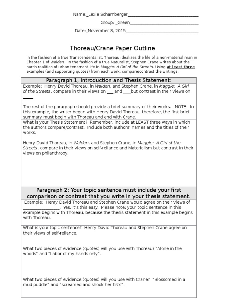 Thoreau Compare Contrast Outline Pdf Walden Henry David Thoreau